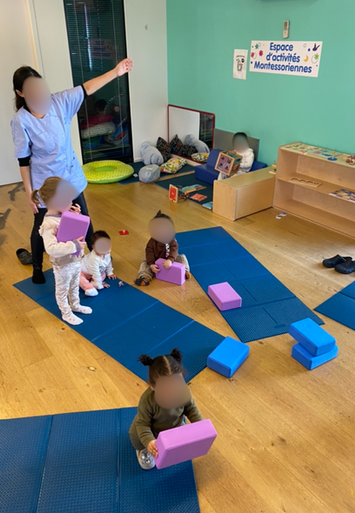 Des supports visuels sont mis à disposition durant la séance, pour s’adapter au cadre de référence des enfants, et faciliter l'engagement et le mimétisme.
